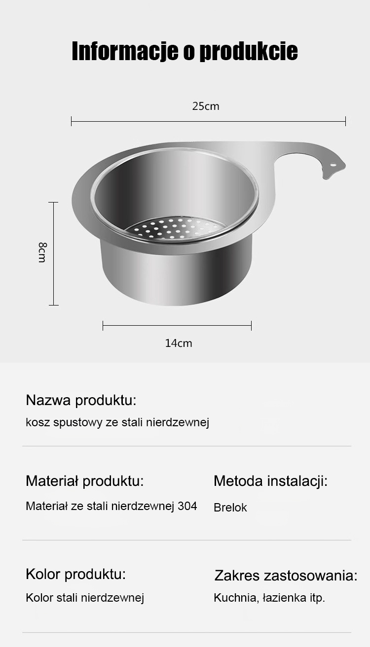 Kosz ociekowy ze stali nierdzewnej 304